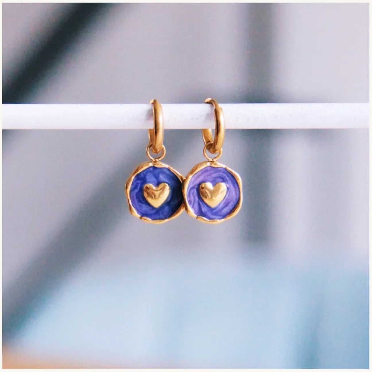 Bazou : RSV creolen met ronde hart bedel - paars/goud