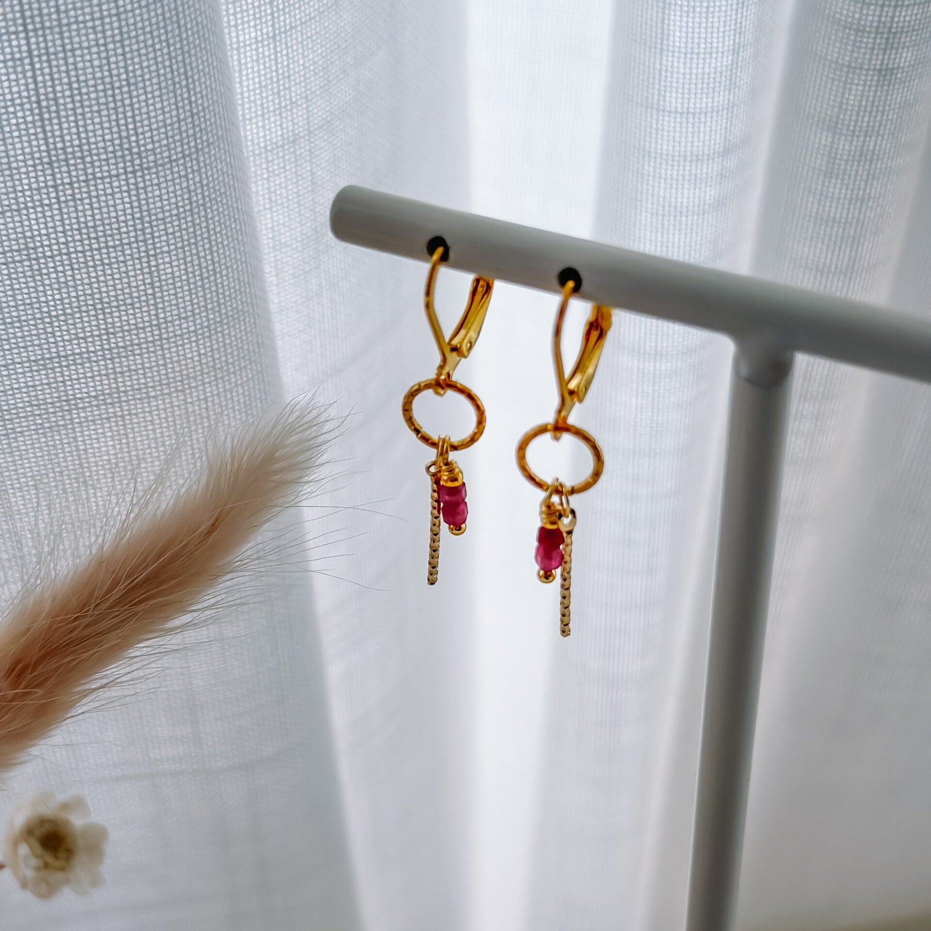 Isa & roza : oorbellen : fijn ringetje en burgundy halfedelsteentjes