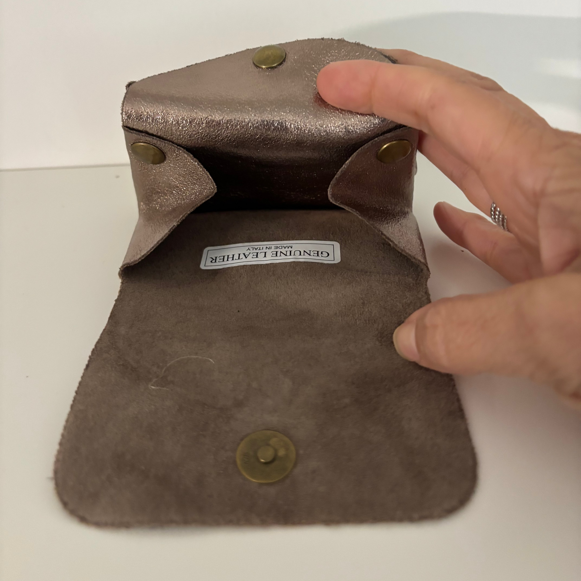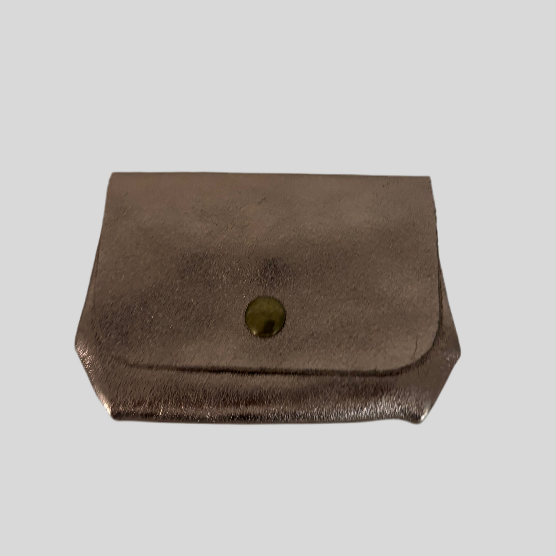 Kleine lederen portemonnee - glitter brons met gouden drukknop