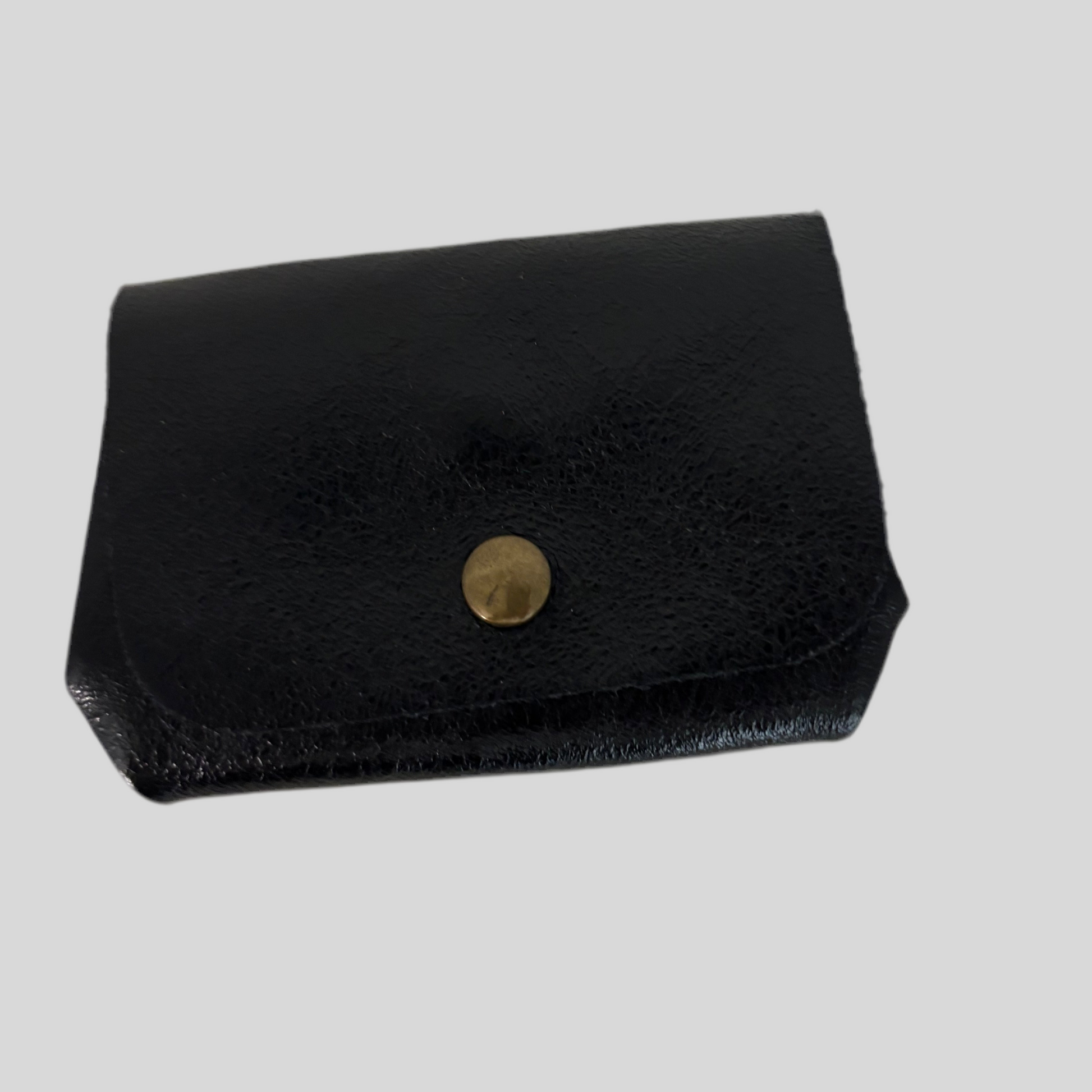 Kleine lederen portemonnee : glitter zwart met gouden drukknop