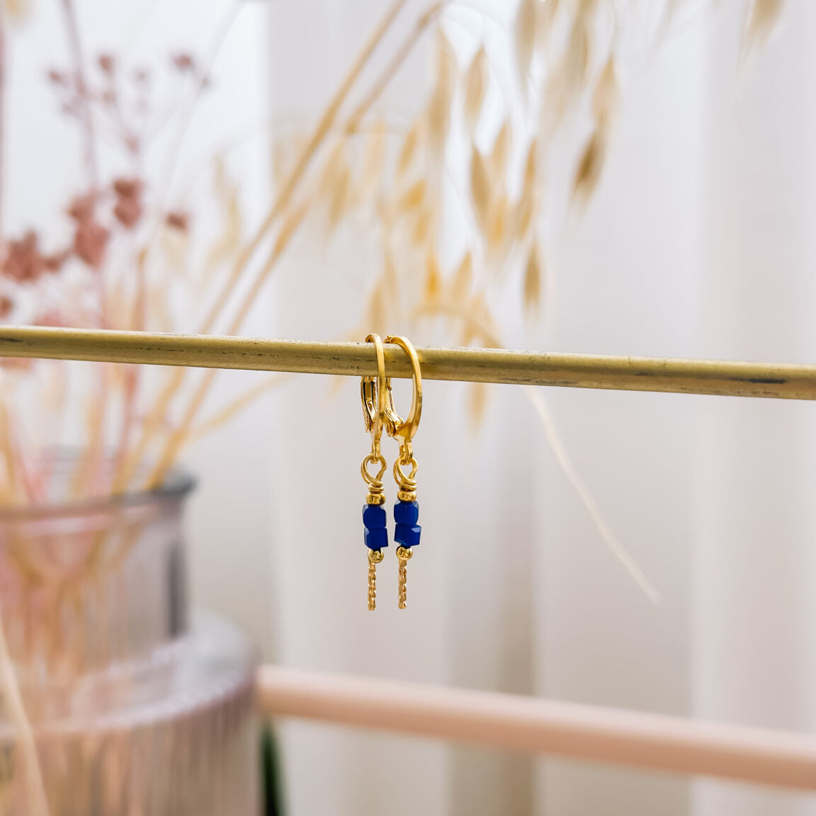 Minimalistische oorring met kobaltblauwe glaspareltjes – Elegant & tijdloos