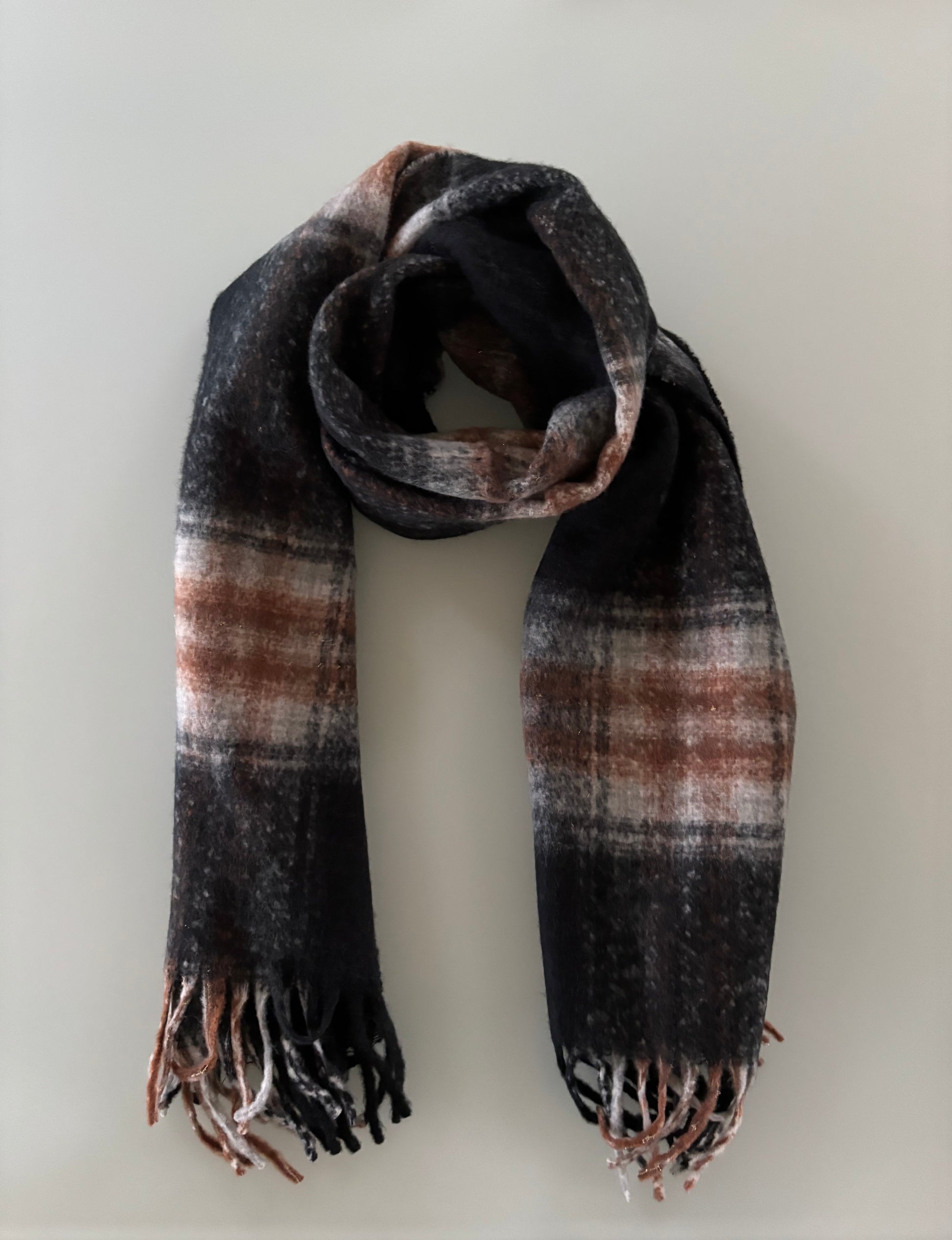 Sjaal met gestreepte details - zwart/grijs/bruin
